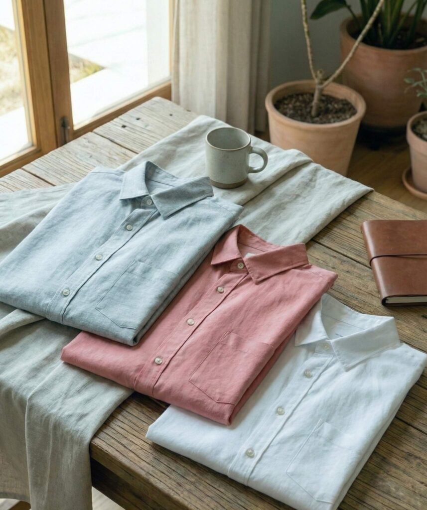 Smart casuals in bamboo, cotton, hemp, lyocell, linen blends — for men who’ve outgrown polyester lies.
